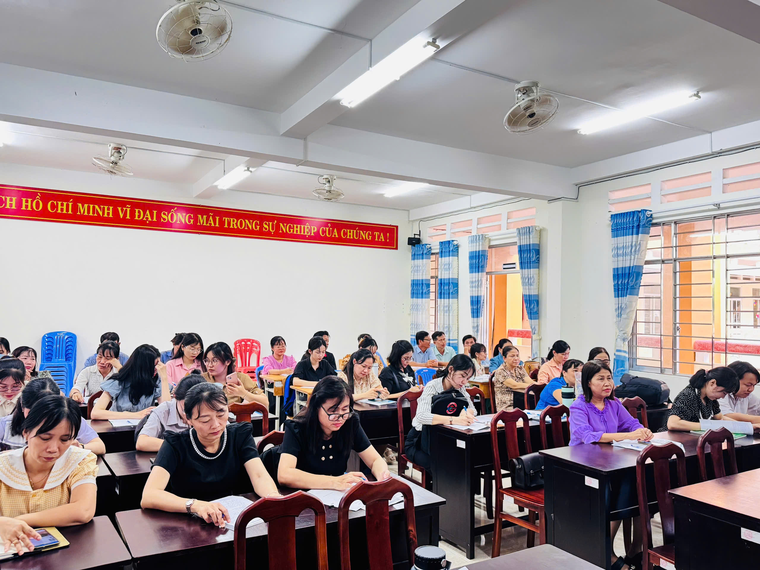 Buổi chuyên đề diễn ra trong không khí nghiêm túc và cởi mở, với sự tham dự của Ban giám hiệu, tổ chuyên môn và toàn thể giáo viên trong nhà trường. Mục tiêu của hoạt động là giúp giáo viên nâng cao hiểu biết về phương pháp STEM và vận dụng vào giảng dạy môn Toán một cách hiệu quả.