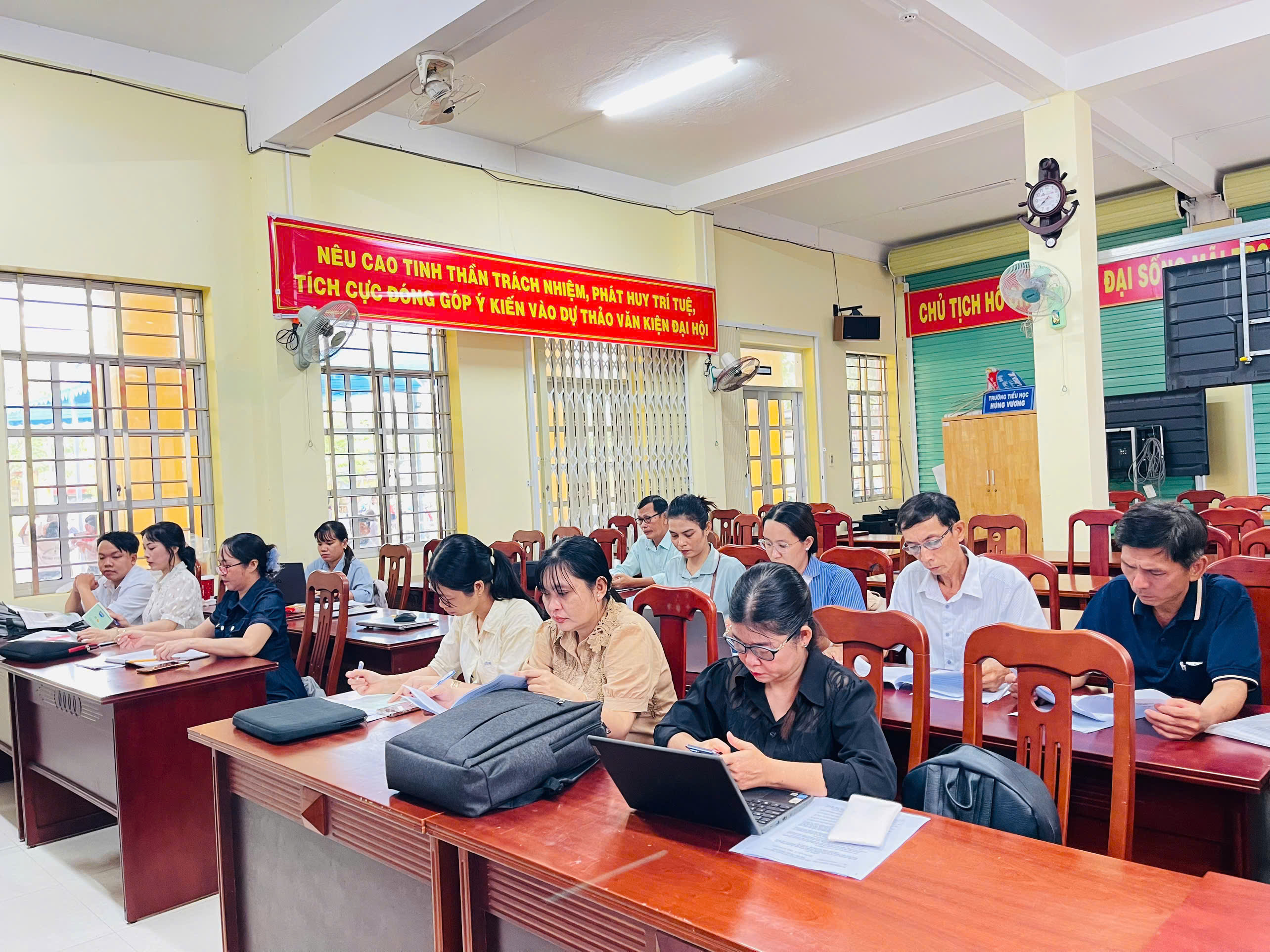 Chiều ngày 21/11/2025, Trường Tiểu học Hùng Vương đã tổ chức buổi tập huấn hướng dẫn thực hiện Chương trình Giáo dục Phổ thông (GDPT) sửa đổi đối môn Lịch sử và Địa lí cấp Tiểu học. Buổi tập huấn diễn ra trong không khí nghiêm túc, tích cực và đầy tinh thần học hỏi của giáo viên.